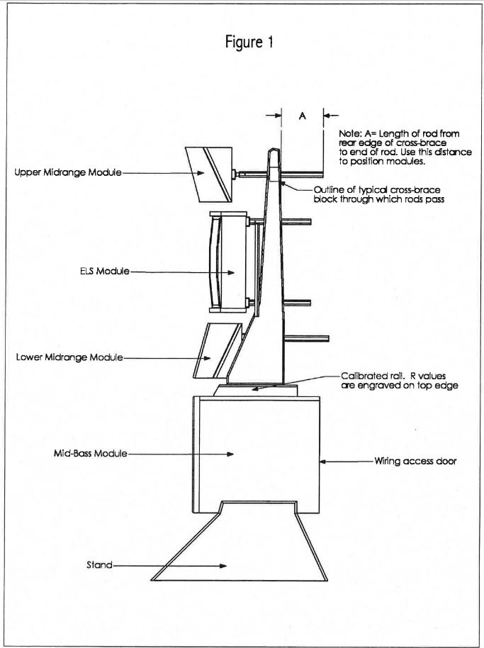During Dave Wilson's earlier experiments with creating a movable mechanism to align a module with the time domain, he kept coming back to this idea—there was a direct correlation between the acoustic center of the driver and knowing where and when the sound from each of the drivers arrived at his listening position. With a microphone placed at his listening position, he began running full-bandwidth pulses through the modules. He could see how the pulses varied in arrival time by observing the different transient blips produced by each module. The transient peaks were displayed horizontally (the axis representing time) in his oscilloscope. As he moved the module, the blip it produced moved in relationship to the other pulses, which were, in turn, generated by each of the other modules. He experimented by moving the modules until all of the pulses aligned on the scope. Sure enough, he could immediately hear a substantial improvement in the sound.
